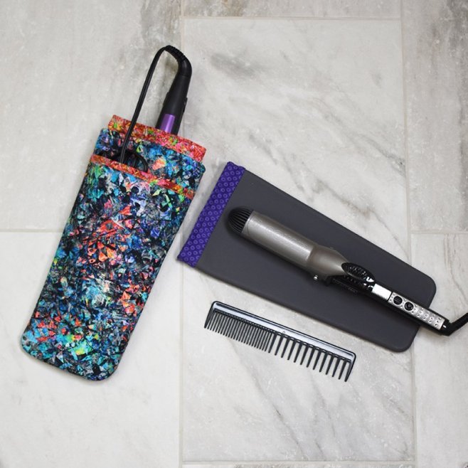 No more waiting to pack your bags! Create a designer silicone travel case for a flat iron or curling iron in this class. The silicone insert has an interior raised surface for added heat resistance. Your finished case will have a separate pocket for the cord. After completing your case, you can remove the silicone to protect the surface under your hot hair accessory. This case is also an excellent way to transport a wand-style mini iron to class or a retreat. Silicone insert is 100% high quality food grade silicone and heat resistant up to 450 degrees. Refill silicone inserts available if you want to make more. $25.00 for the class plus pattern and supplies. Finished case measures approx. 6 in x 13 in. Class space is limited so please call, stop in or click her to order online.