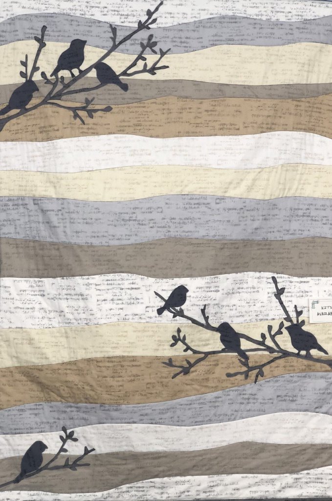 Song birds sitting on the tree branches and the music notes in the background make a beautiful quilt. This kit is from the Aria collection from Andover. There are a few left so stop by, call 406-442-7327 or click here to order online. Don't wait to long. These will sell out quickly. The quilt measures 40" X 54". 15% off today.