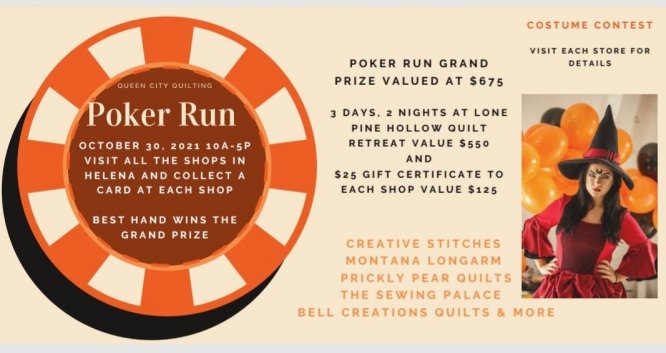 Grab a friend, or two, and join Helena area quilt shops on Saturday, October, 30, for a fun filled day of trick or treat.