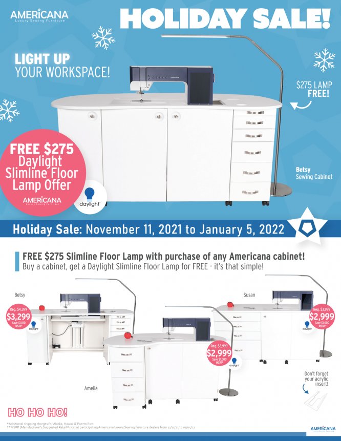 PPQ has been an Arrow Dealer since 2012. With their recent addition of Americana Furniture, sewing cabinets made in America, we are excited to relaunch our partnership on PPQ's 10th Anniversary. Don't miss out on these specials and the opportunity to see firsthand and try out these cabinets and chairs!