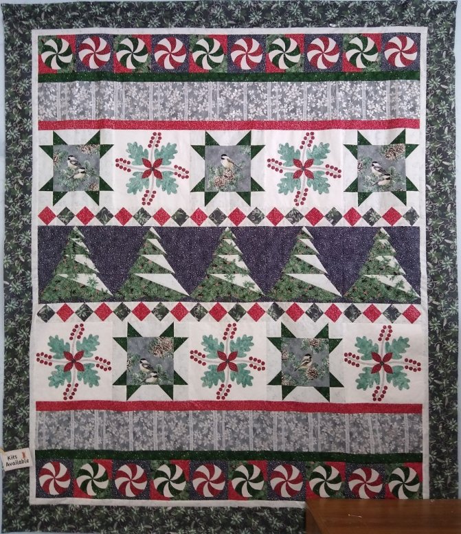 This Flights of Whimsy Quilt Kit includes fabric for the quilt top, binding and all the fabric to bring this quilt to life. This quilt is designed by Pieced Brain Designs, featuring Frosted Flight. The cardinals take flight through the frosted forest with this breathtaking pattern. Stop in, call, or click here to buy online. Don't wait there is only one kit left. Please call the store, 406-442-7327, if you have any questions.