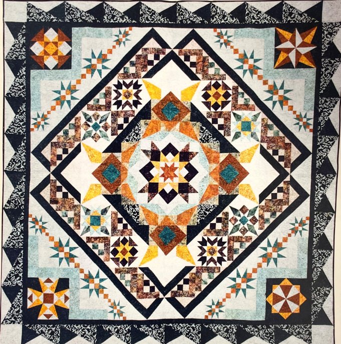 The Solare quilt uses beautiful Banyan Batiks by Northcott to create a stunning bed quilt. In addition to this beautiful quilt, a bonus project will be included for a 24" x 24" sham, or wall hanging.
