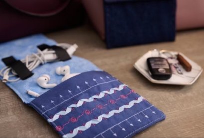 On Friday, enjoy creating a Power Pocket Cable Organizer. In this class, you will learn Design Appliqué, Design Shaping, Exclusive Stitches, and Laser Sewing Guidance. You will be amazed at how accurately the laser allows you to place and stitch out your designs.