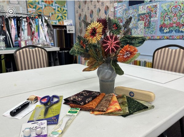 Join Prickly Pear Quilts' What's-in-the-Bag contest winner, Meg Jones, for a fun-filled day learning to create a fabric flower bouquet. Class includes fabric, so come in and pick out your fabric before class, PPQ staff will bag your lovelies and the instructor will have it all prepped for you and ready to assemble on the day of class. It will be helpful for the instructor if your fabric is picked out by November 1, so she has time to prepare. The fabrics need to be stiffened and there are 63 pieces to cut per fat quarter and fabric!