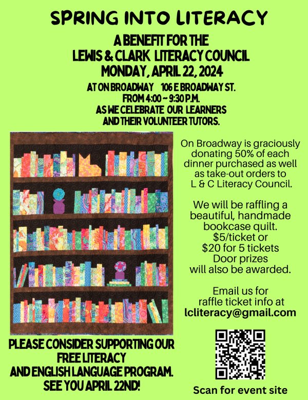 Join us at Prickly Pear Quilts on Saturday, April 13, from 12pm to 4pm, and view this fun quilt being raffled in support of Lewis & Clark Literacy Council. Kathe Simons will be here with raffle tickets and to provide information on Lewis & Clark Literacy Council's mission and their April 22 benefit sponsored by On Broadway.