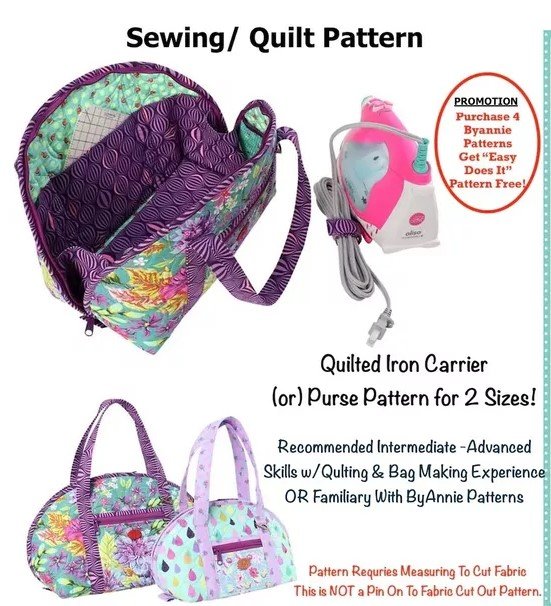 Fashionable and cute, these spacious zippered bags come in two sizes to hold your favorite travel or regular-sized household iron. They are perfect for classes or retreats. Plus, using leftover fabrics and interfacing from the project, you can create an easy-to-make cord wrap to neatly contain cords. Sign up here today!